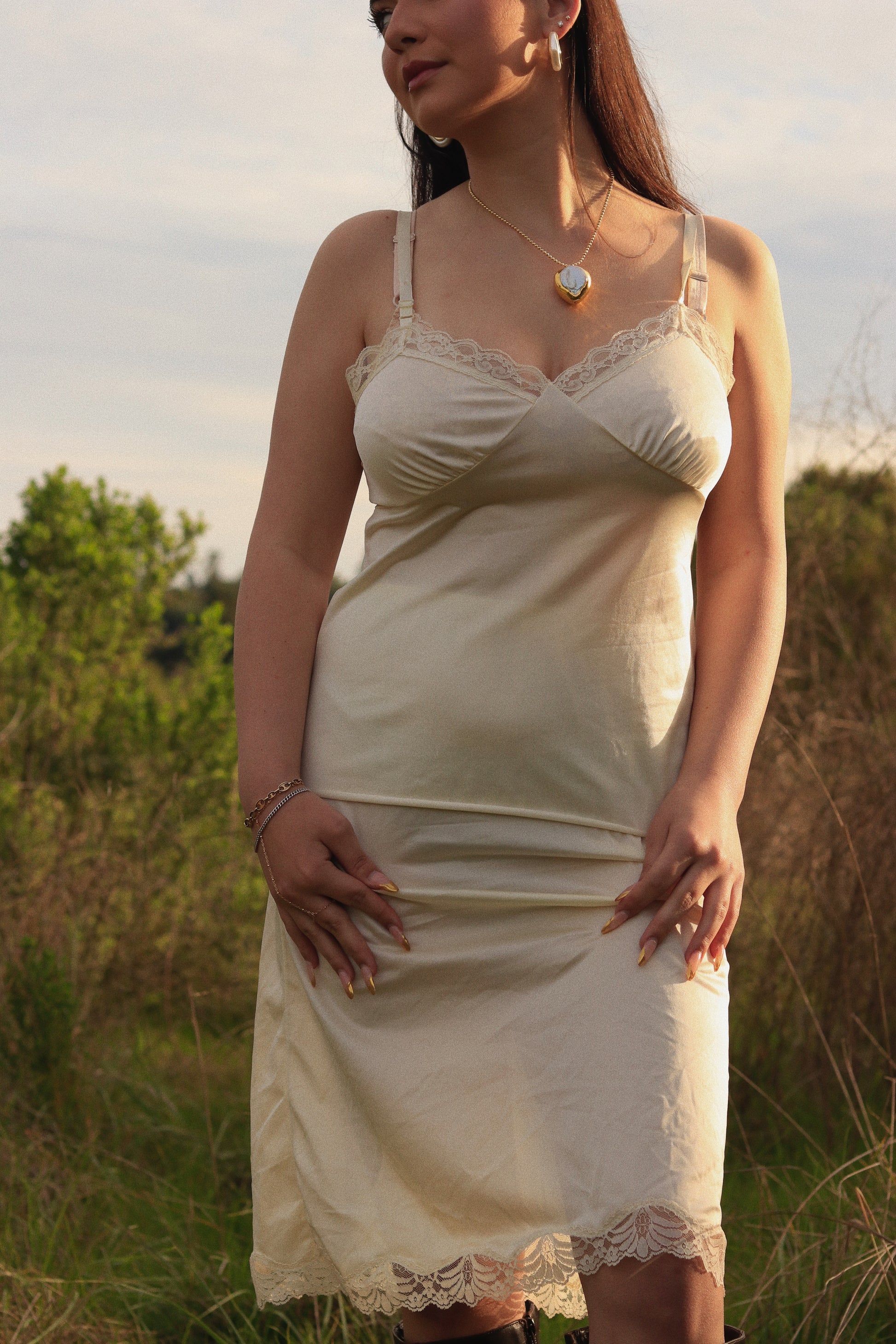 The most stunning butter yellow top with lace trimming along the neck line. This top pairs perfectly with the matching skirt. This top is a medium.