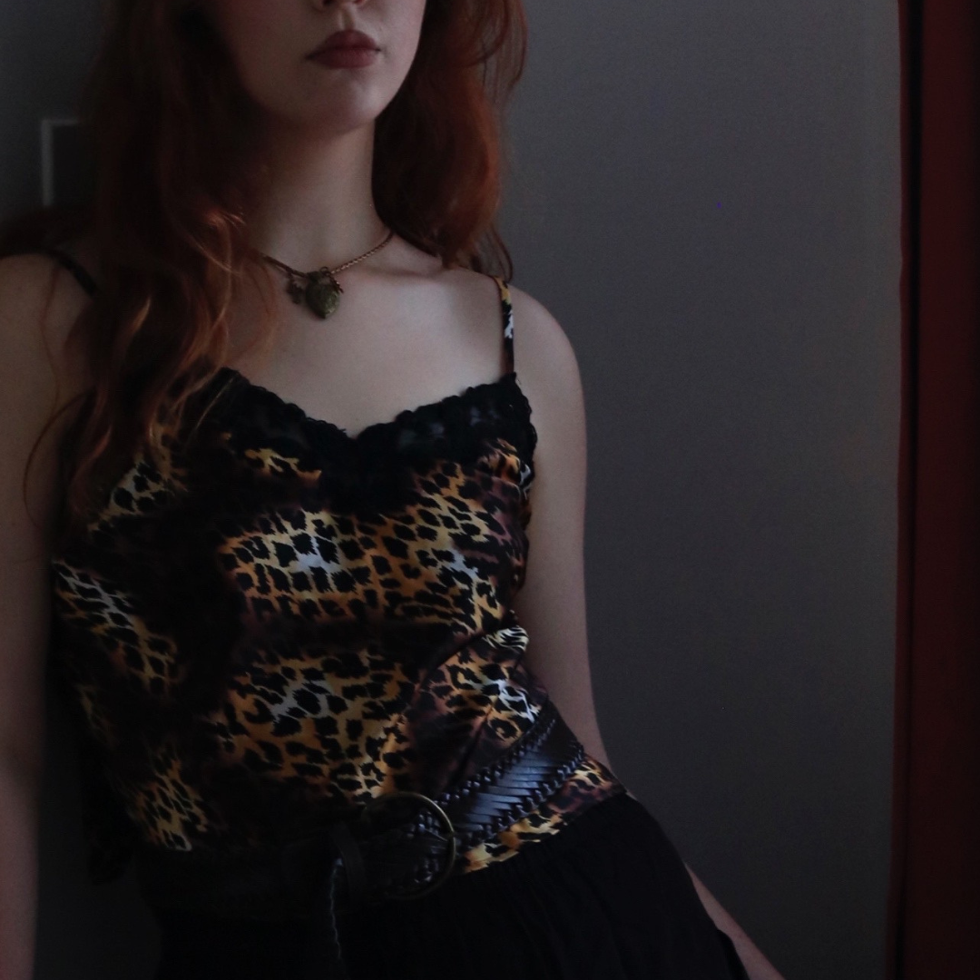 The Jemima Tank is a 2000's vintage Victoria's Secret tank. This stunning silk top has a cheetah print throughout, and beautiful black lace trim along chest. This top is a size S/M.