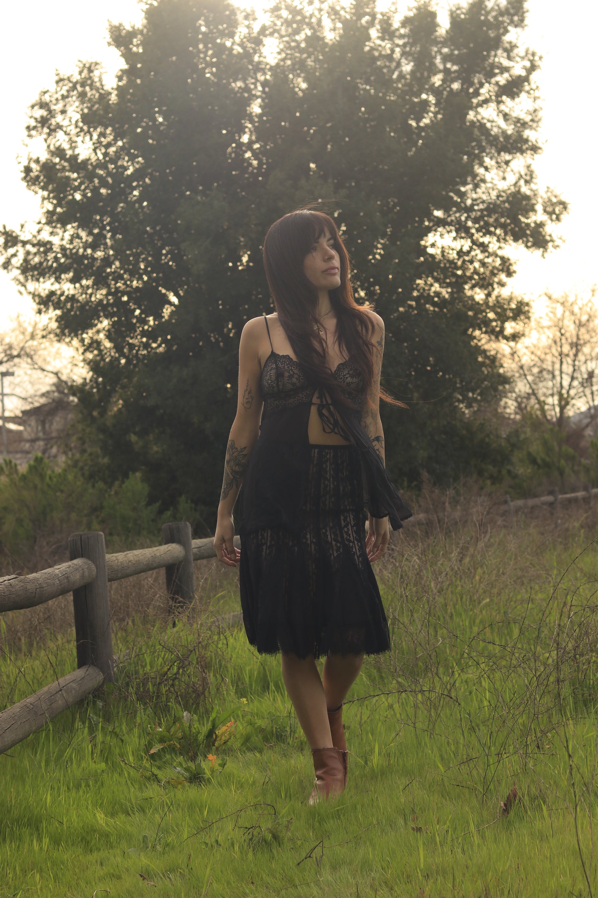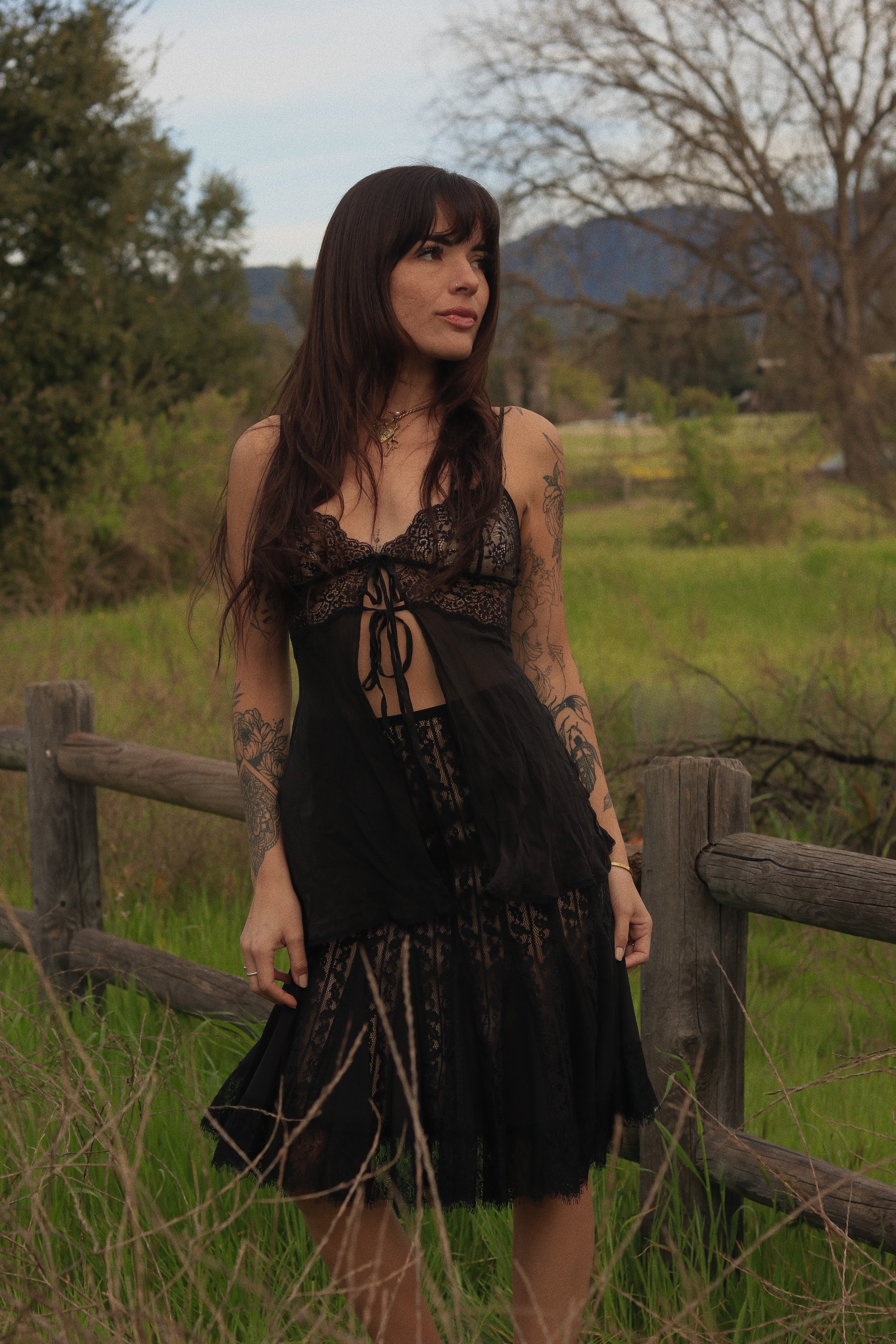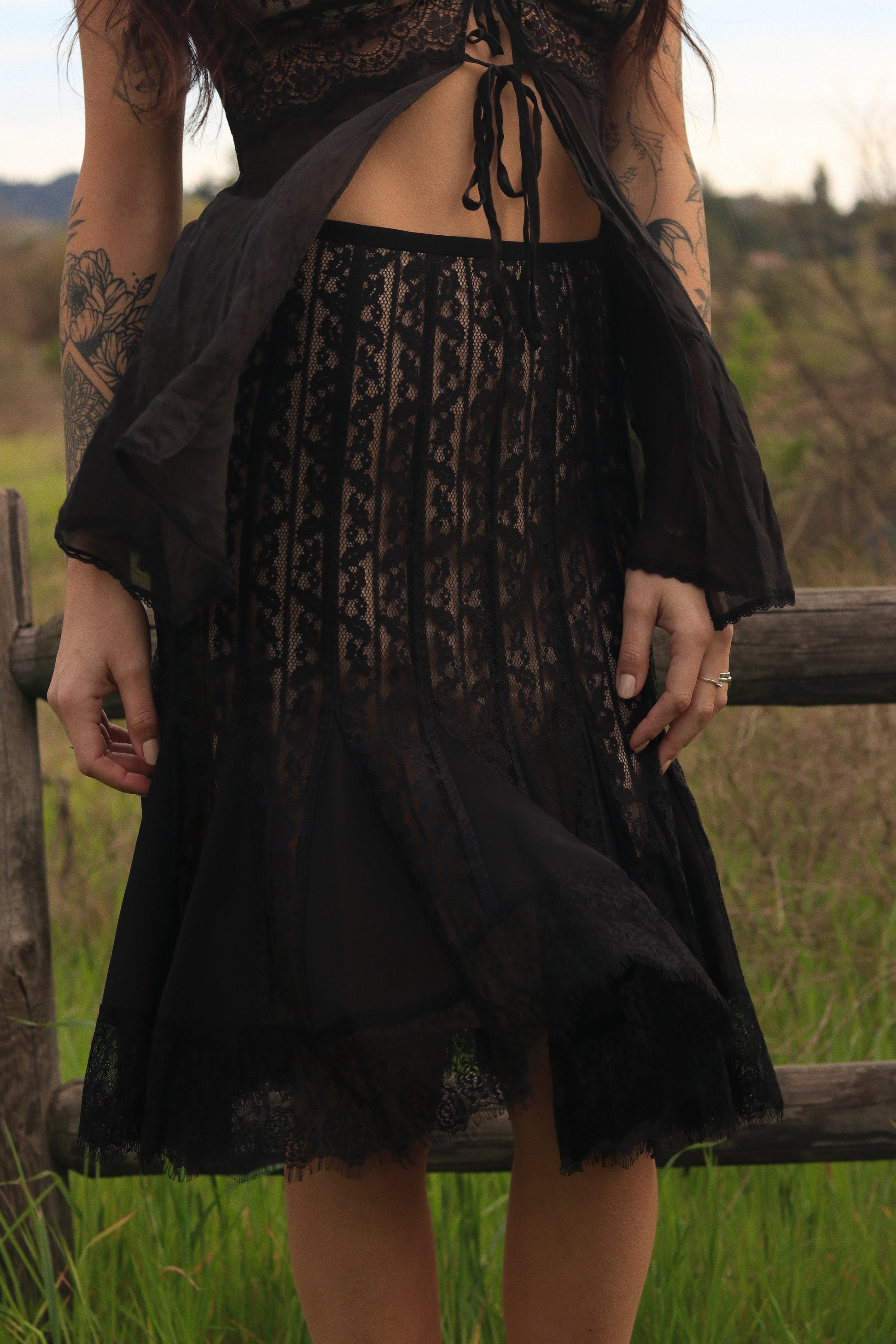 This black lace skirt is so striking. It has a nude fabric underneath with black lace on top. This skirt is perfect for a more sexy spring/ summer look, especially for the evening. This skirt is a size 2.