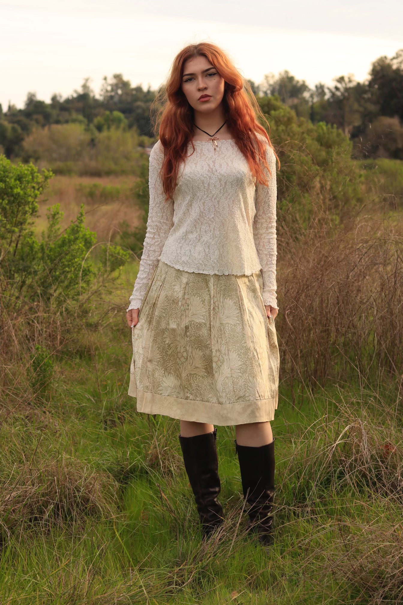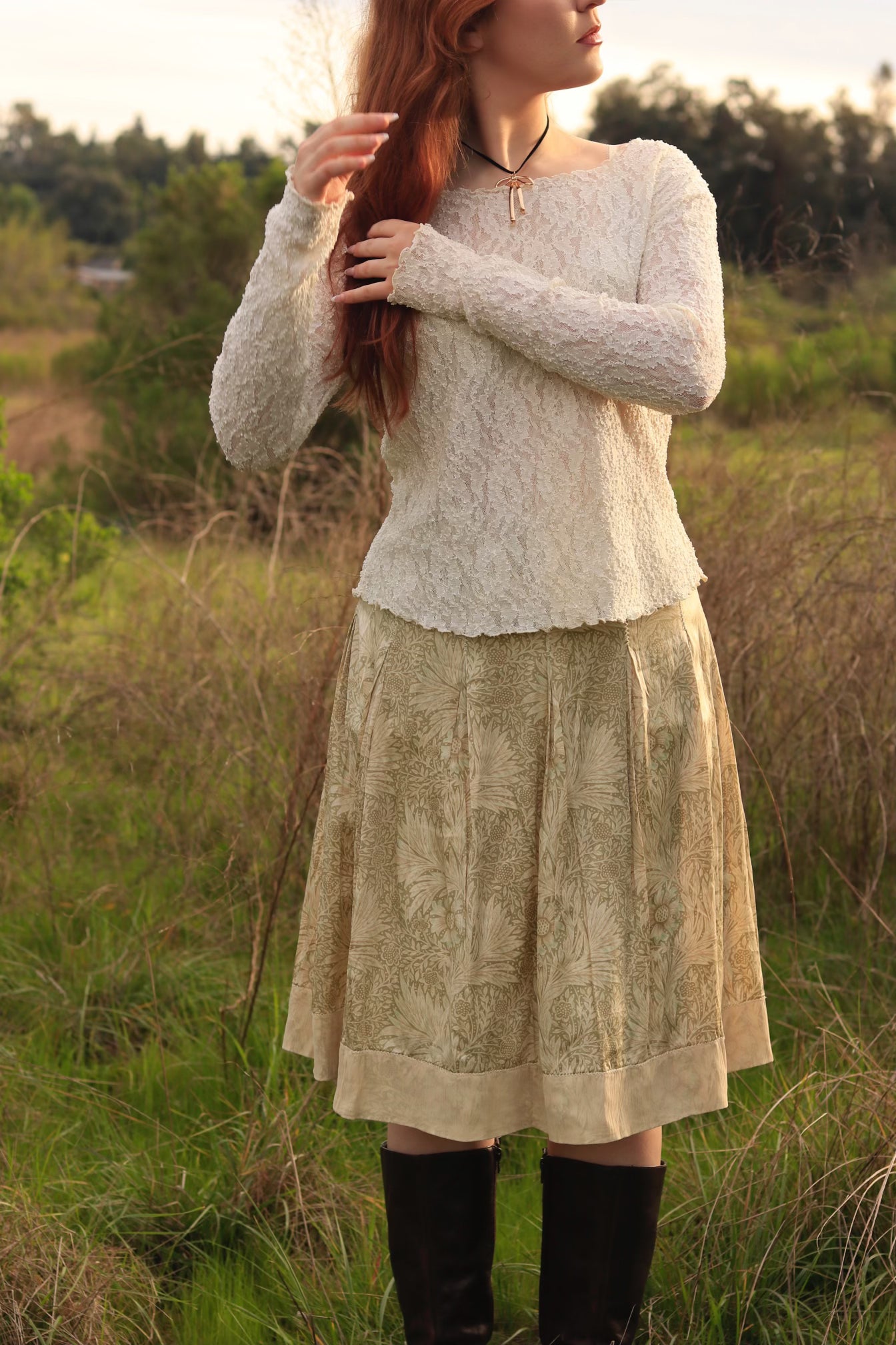 This lace, mesh top is so pretty and flattering. This top is perfect for spring while it’s still a little chilly, pair this top with a skirt and some boots and your set! This top has stretch so it can fit S/M/ or L.