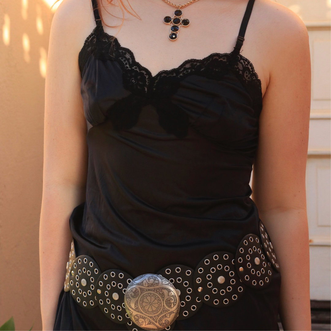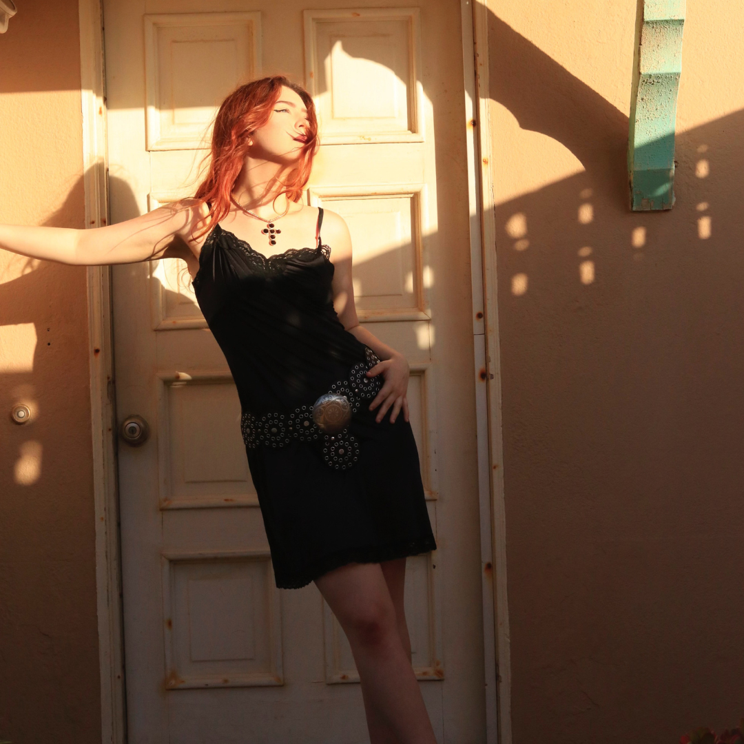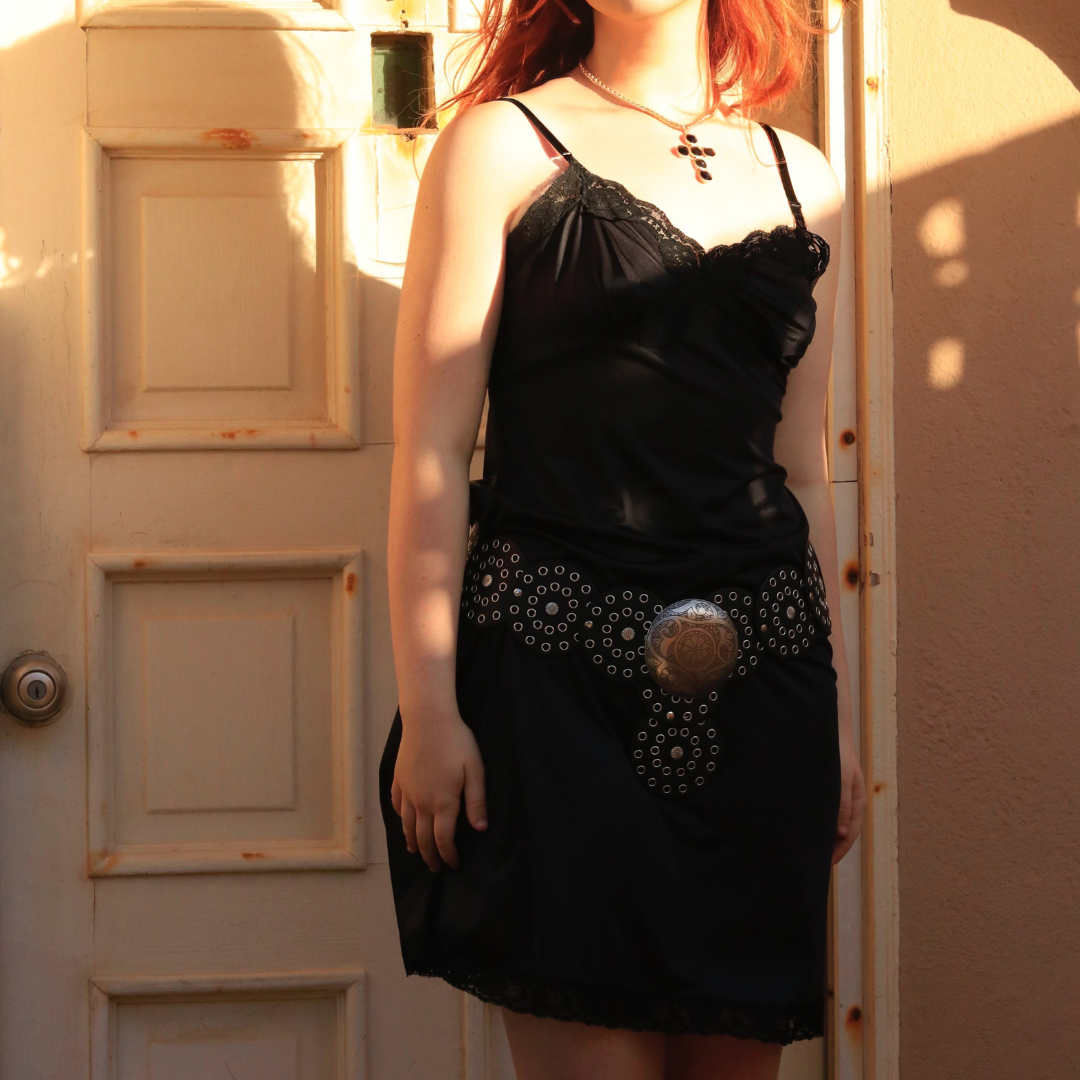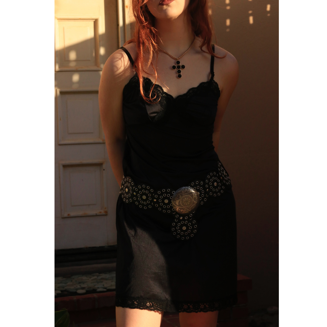 The Marley slip is a sexy/ yet elegant vintage slip. There is lace paneling in the bust area giving it a unique design. This slip can be dressed up as well as dressed down. The model is a S/M up top, and a L in her hips and thighs. This slip is more so a M.
