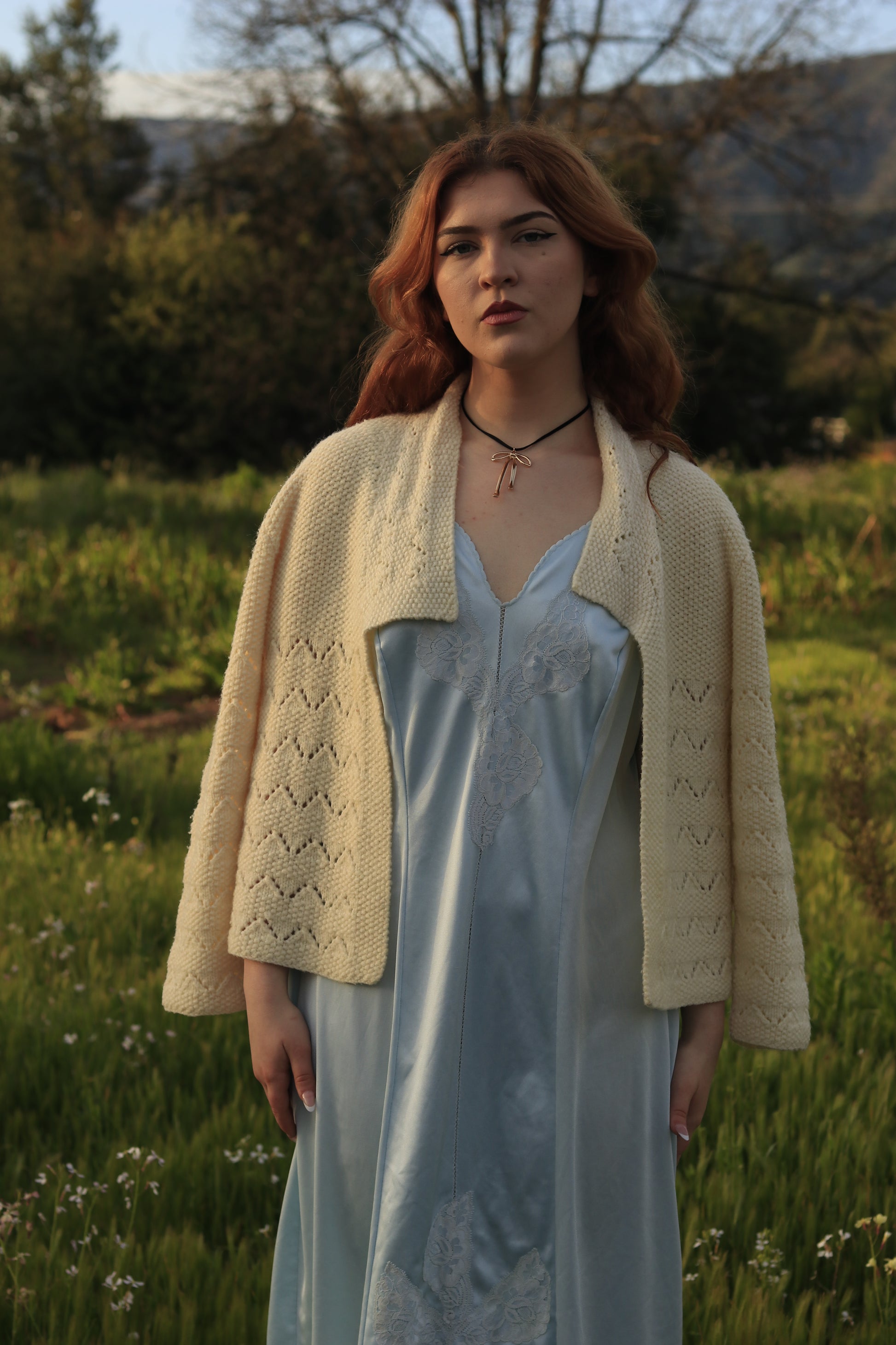 The cutest vintage cardigan. With stunning knit details throughout the sweater. Toss this sweater over a dress this spring or pair with linen pants and a cute tank. Can fit a S,M, and L.