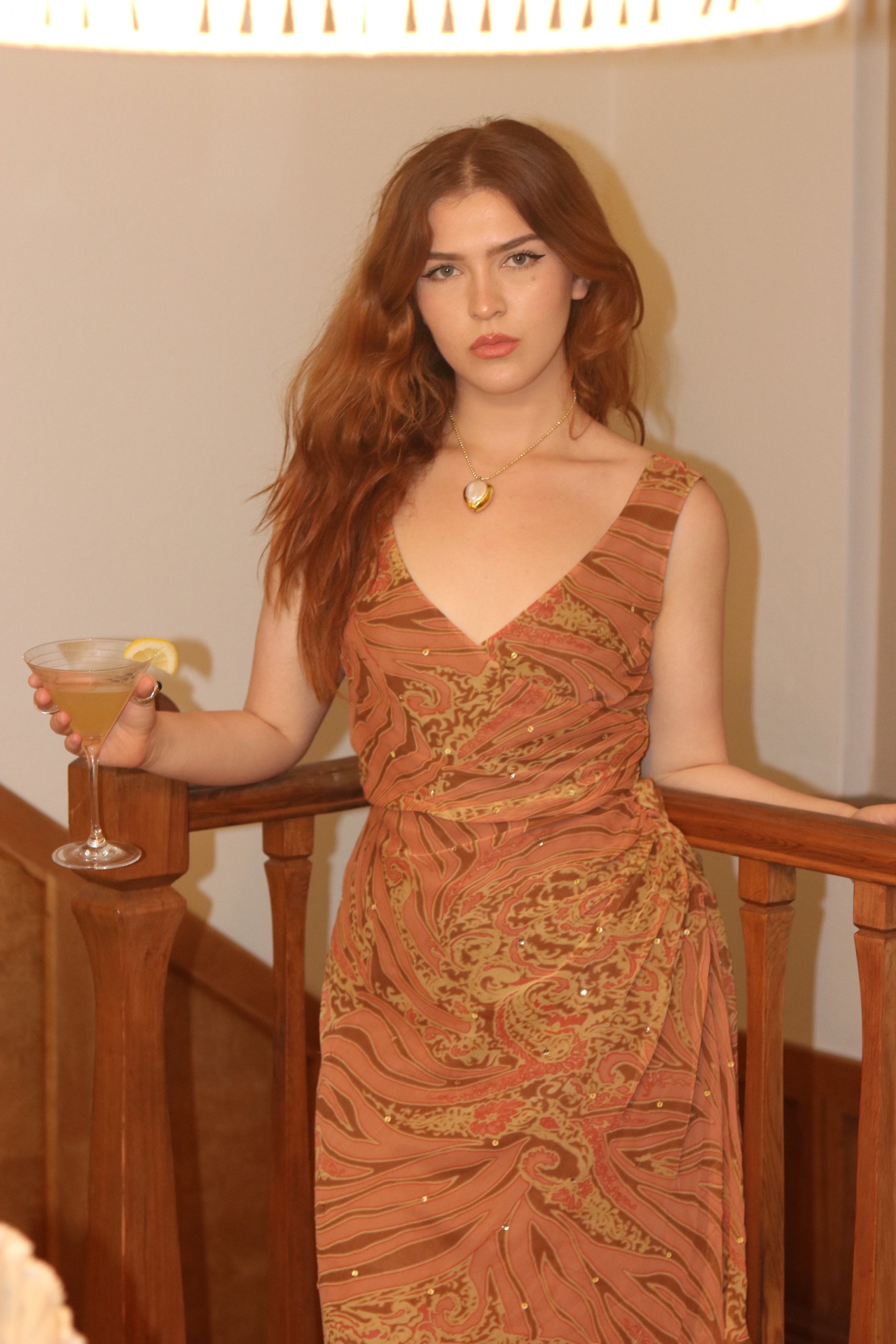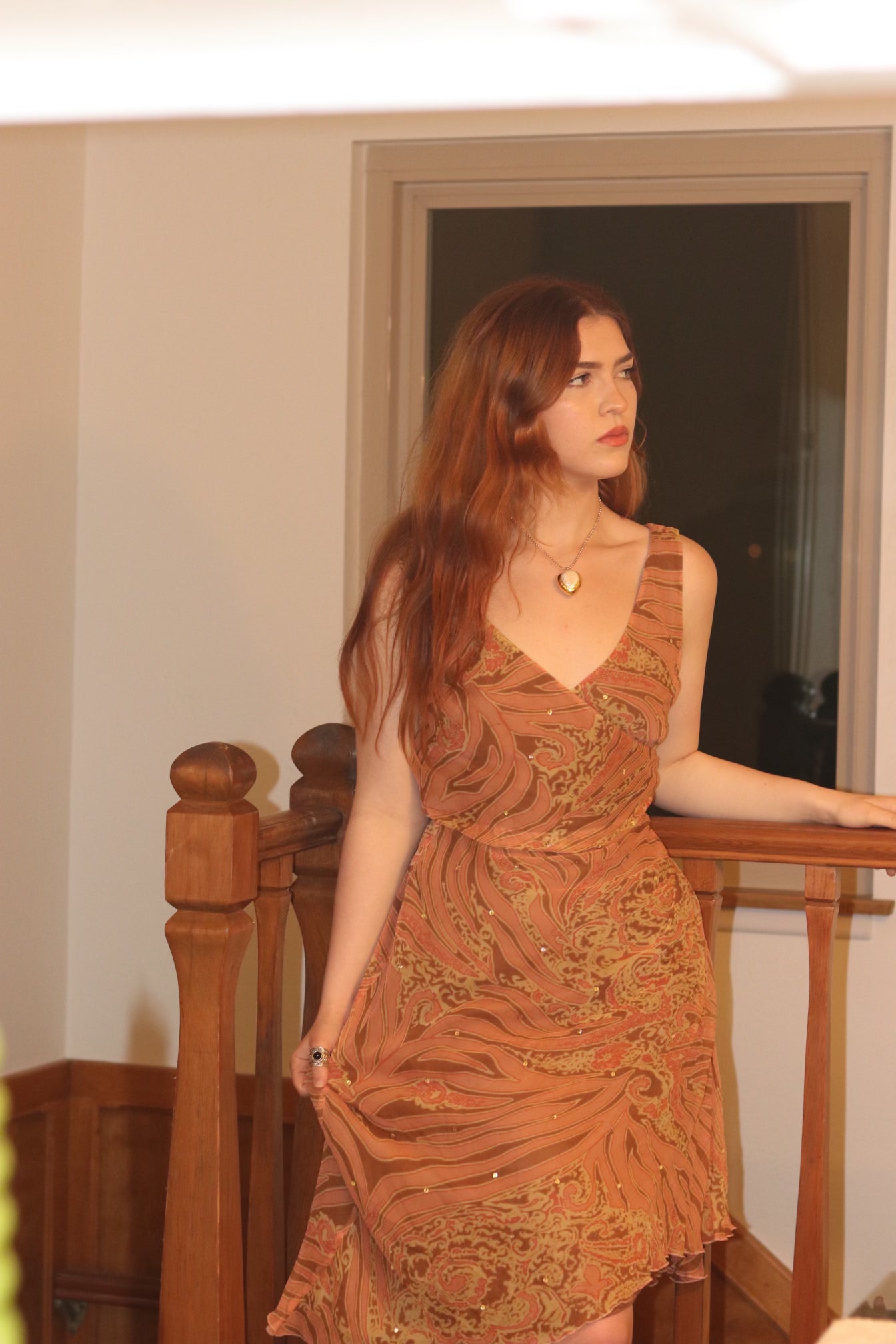 A stunning Y2k dress with pink/ peach tone and brown animal prints. This dress is a size 12 and is being modeled on a size medium model.