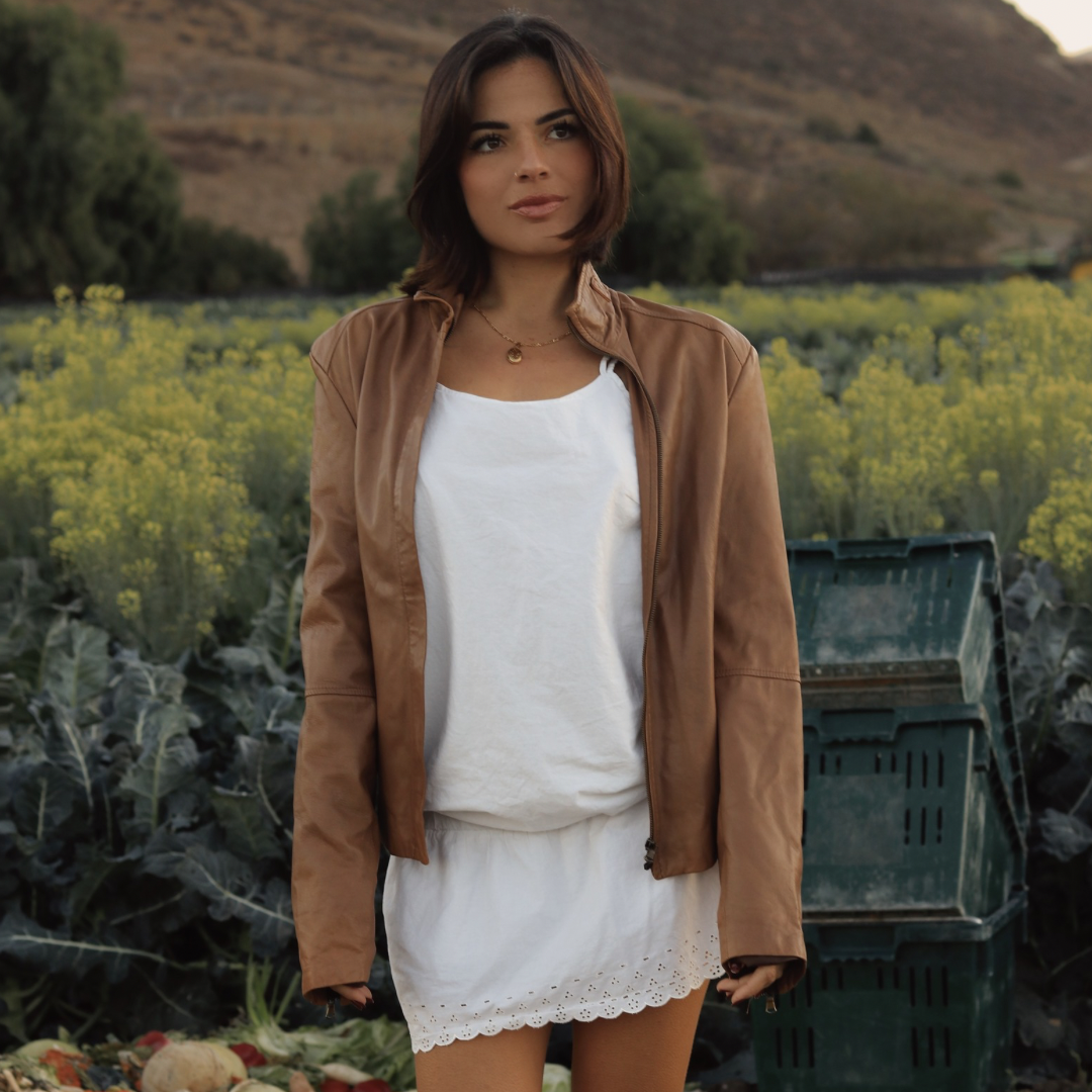Serena Leather Jacket – Light Brown Moto Jacket Made in Italy
