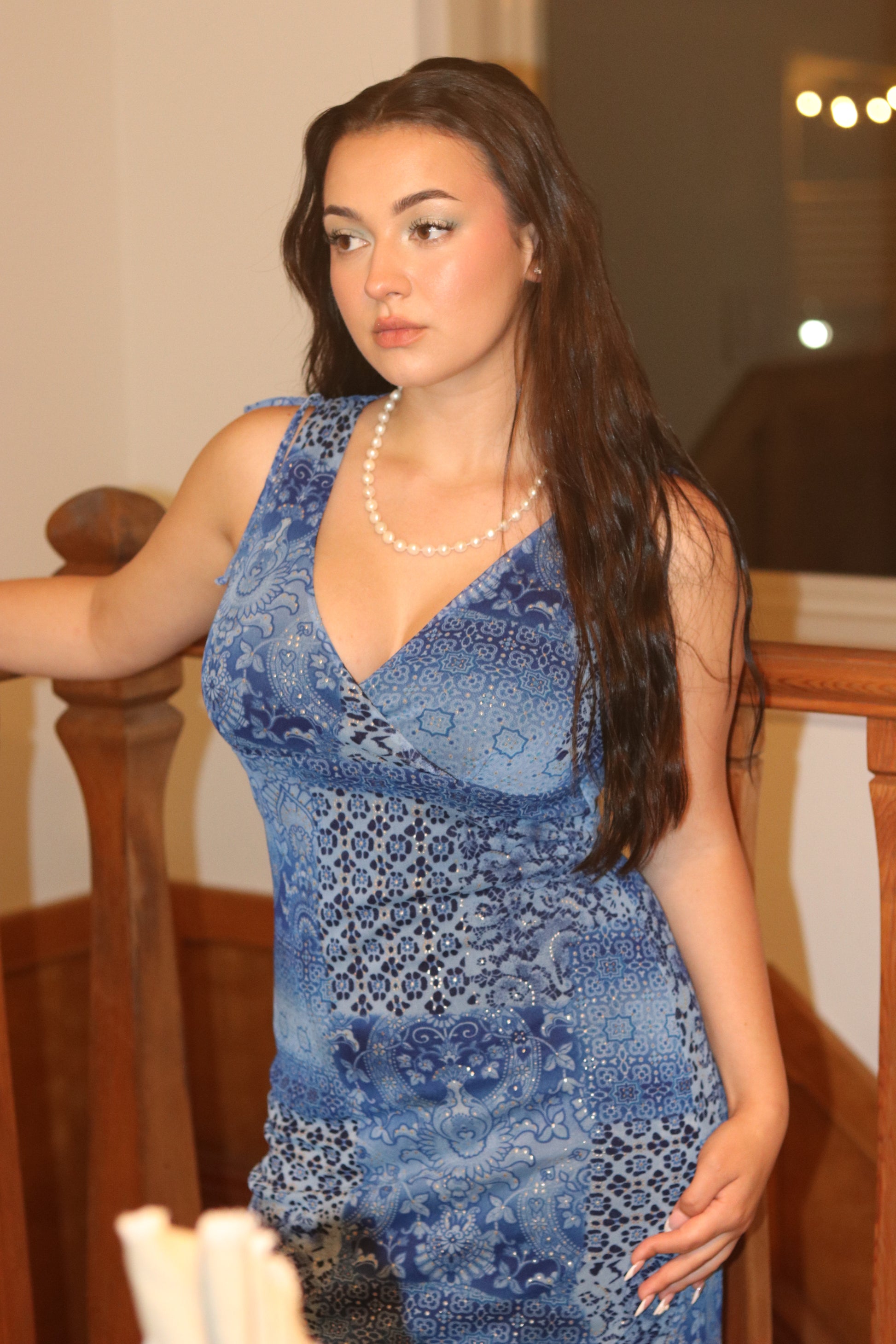 This blue patterned Y2k dress is so fun and filled with pattern all over. This dess would pair perfectly with some platform sandals and some cute hair clips! This dress is a size XS/S.